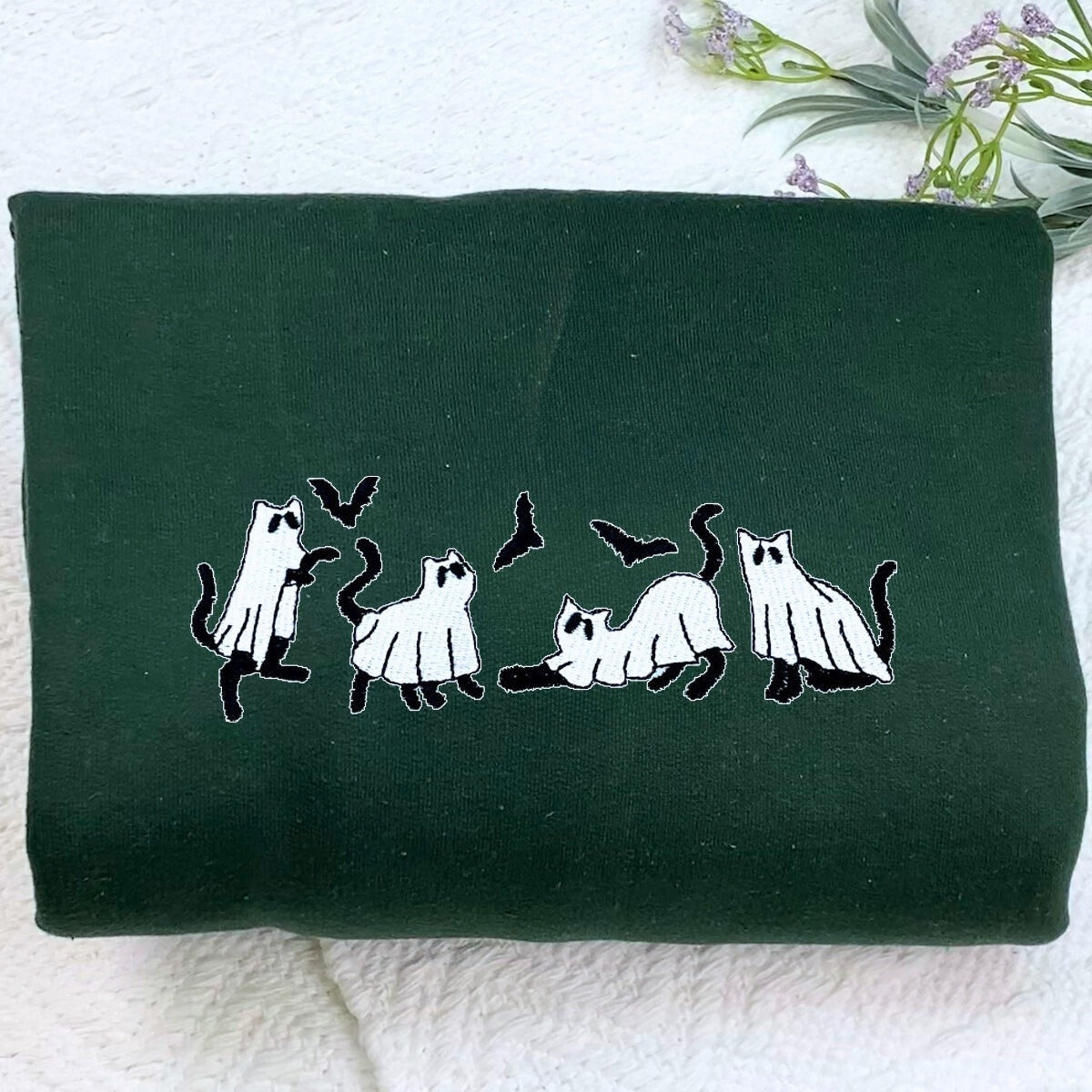 Embroidered Ghost Sweatshirt, Halloween Sweatshirt, Ghost with Black Cat Hoodie