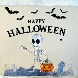 Spooky Embroidery: Skeleton and pumpkin lantern design for festive Halloween vibes