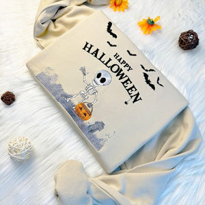 Embroidered Halloween Skeleton Sweatshirt, Pumpkin Lantern, Unisex