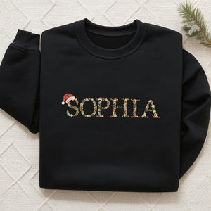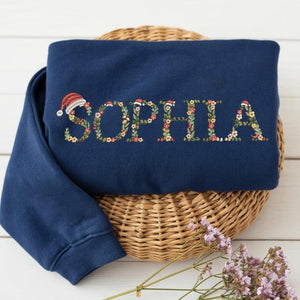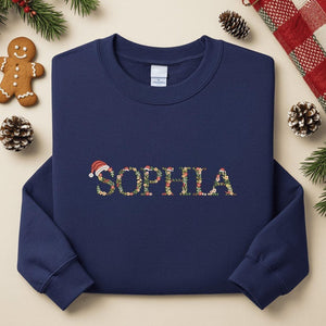 Embroidered Personalized Christmas Sweatshirt - Floral Custom Name Crewneck Sweater - Custom Xmas Gift - Matching Christmas Hoodies