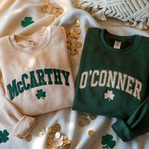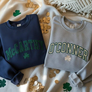EMBROIDERED Personalized Last Name St Patrick's Day Sweatshirt, Shamrock Last Name Sweatshirt, Irish Sweatshirt, Irish Surname Sweatshirt