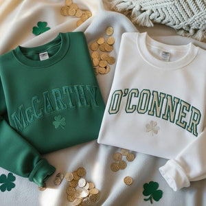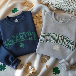 Celebrate Irish heritage in style with this Embroidered Personalized Last Name St Patrick’s Day Sweatshirt. Featuring a charming shamrock design and custom family surname, this cozy crewneck is the perfect way to show off your Irish pride. Whether you're celebrating St. Patrick’s Day, attending a parade, or simply honoring your family roots, this personalized Irish sweatshirt adds a meaningful and festive touch to your wardrobe.