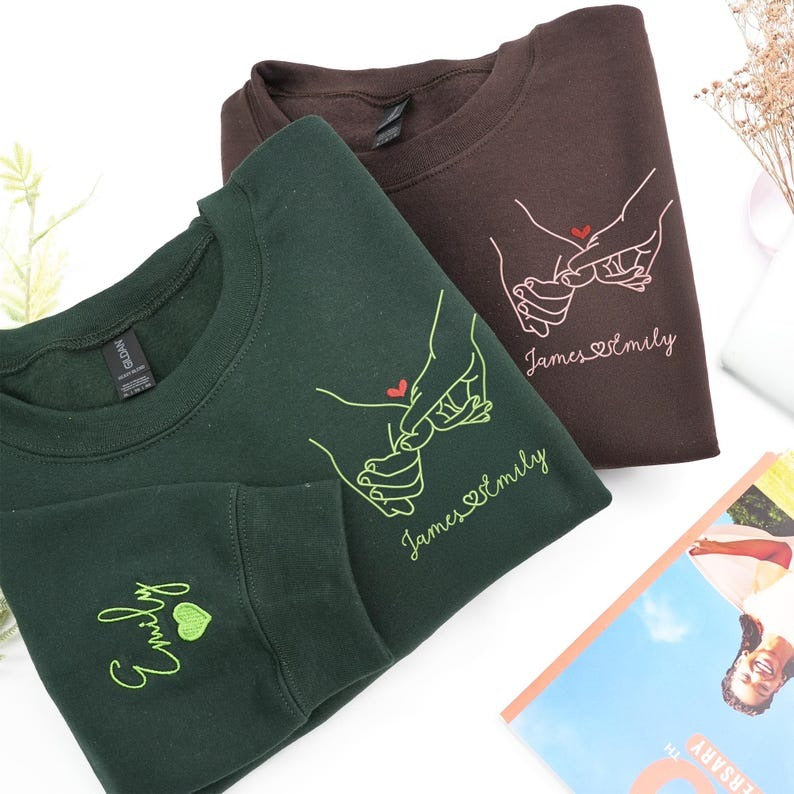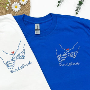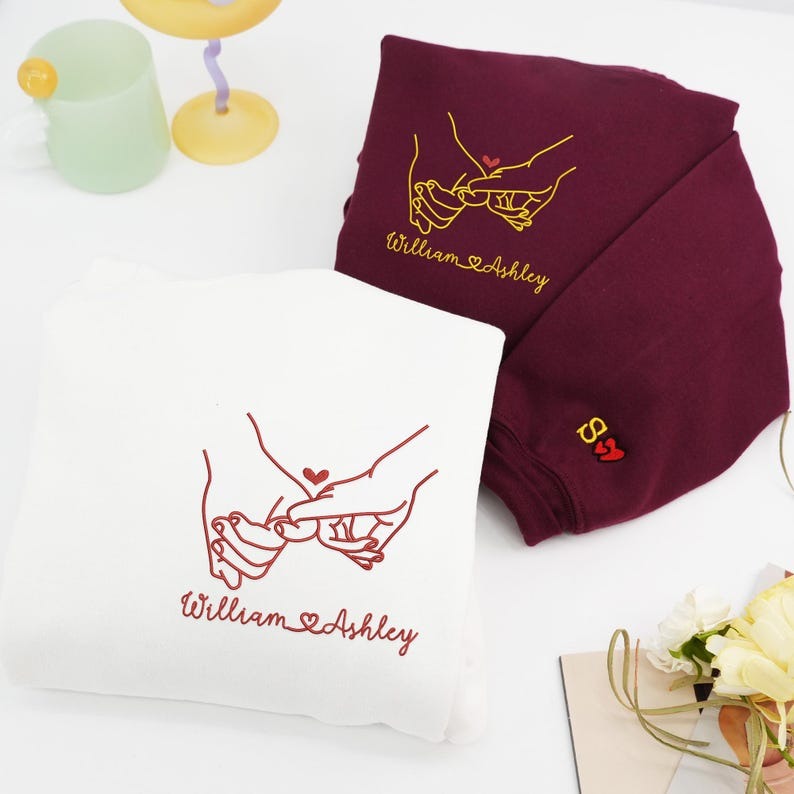 Celebrate your love with our Embroidered Pinky Promise Couple Sweatshirt — the perfect matching gift for Valentine’s Day, anniversaries, or any special moment together. Featuring a meaningful pinky promise design embroidered with precision, this custom hoodie/sweatshirt symbolizes your promise to love, support, and stick together forever.