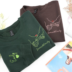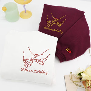 Embroidered Pinky Promise Couple Sweatshirt: Custom Matching Valentine's Gift, Girlfriend Boyfriend Hoodie