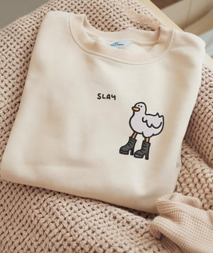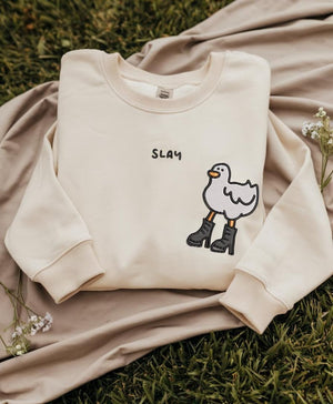 Meet your new favorite comfy, funny sweatshirt — the Embroidered Slay Duck Funny Sweatshirt. A playful, cozy wardrobe piece that doubles as a quirky gift and a smile-maker.