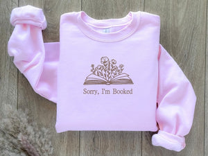 Show off your love for reading with our “Sorry I’m Booked” Embroidered Sweatshirt – the perfect cozy piece for bookworms and library lovers! This soft, high-quality bookish sweatshirt features elegant embroidery and a minimalist design that every reader will adore.