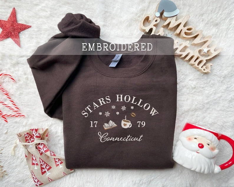 Embroidered Stars Hollow Connecticut Sweatshirt, Cozy Winter Sweatshirt, Stars Hollow Crewneck, Autumn Embroider Sweater, Reader Book Shirt