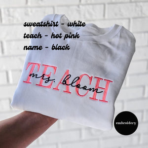 Embroidered Teacher Sweatshirt, Personalized Teacher Gift, Customized Embroidered Sweatshirt, Gift for Tutor, Teach assistant Custom Sweater