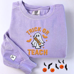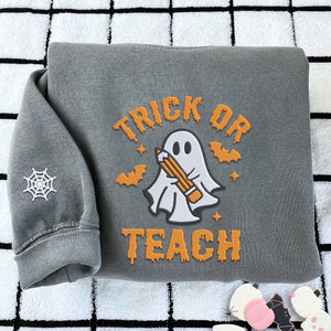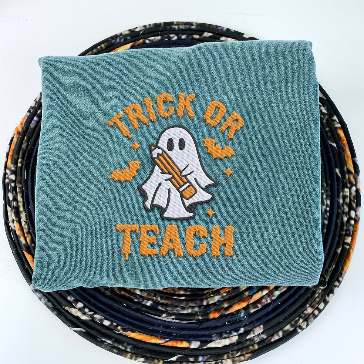 Embroidered Trick or Teach Halloween T-Shirt or Sweatshirt
