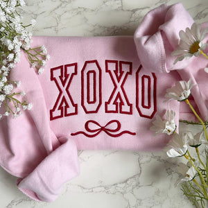 Embroidered Valentine's Day Sweatshirt, Embroidered Valentine XOXO Crewneck Sweatshirt, Embroidered Bow Coquette Sweater, Valentine Shirt