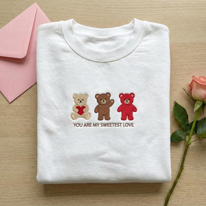 Embroidered You Are My Sweetest Love Teddy Bear Sweatshirt, Valentine's Day Crewneck, Romantic Couple Gift, Anniversary Sweater