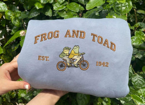 Bring a touch of nostalgia to your wardrobe with our Frog and Toad Embroidered Sweatshirt — inspired by the beloved classic book duo! This cozy crewneck features a beautifully stitched Frog and Toad embroidery, perfect for book lovers, vintage enthusiasts, and anyone who adores charming retro designs.
