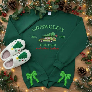 Griswold Christmas Embroidered Side Bow Sweatshirt, Christmas Vacation Shirt, Family Xmas Sweatshirt