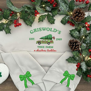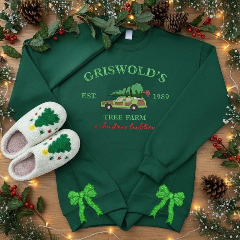 Get ready for the holidays with our Griswold Christmas Embroidered Side Bow Sweatshirt – the perfect cozy and festive outfit for Christmas movie lovers and family gatherings! This Christmas Vacation-inspired sweatshirt features a charming embroidered side bow detail that adds a playful and stylish touch to your holiday wardrobe.