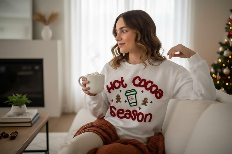 Get into the festive mood with our Hot Cocoa Season Chenille Embroidered Sweatshirt — a cozy holiday favorite!