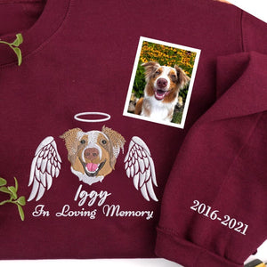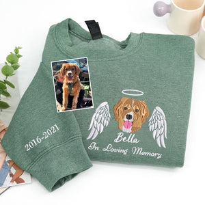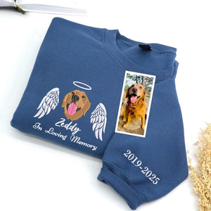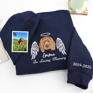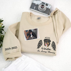 Honor your furry friend with our In Loving Memory Sweatshirt with Dog Portrait — a heartfelt embroidered sweater designed to keep your pet’s memory close. Each sweatshirt is custom-made using your dog’s photo, transformed into a beautifully detailed embroidery. Crafted from premium cotton-blend fleece, it’s soft, cozy, and durable — perfect for everyday comfort and emotional warmth. This personalized pet memorial sweatshirt makes a touching gift for anyone who has lost a beloved dog.