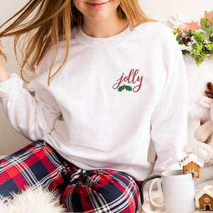 Spread holiday cheer with our Jolly Embroidered Christmas Sweatshirt! Designed for women who love cozy festive fashion, this embroidered holiday sweater features a charming “Jolly” design stitched with care for a timeless, joyful look.