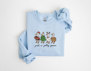 Just a Jolly Goose Christmas funny Embroidered Sweatshirt, Holiday Apparel, Holiday Sweatshirt, Christmas Embroidery, matching Gifts