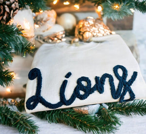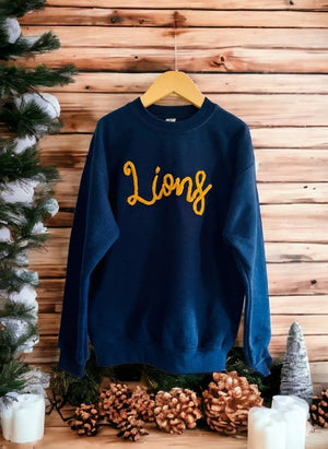 Lions chenille yarn embroidery sweatshirt, team spirit, school spirit, crewneck sweatshirt, Lions sweatshirt, custom made, cheer mom, fuzzy