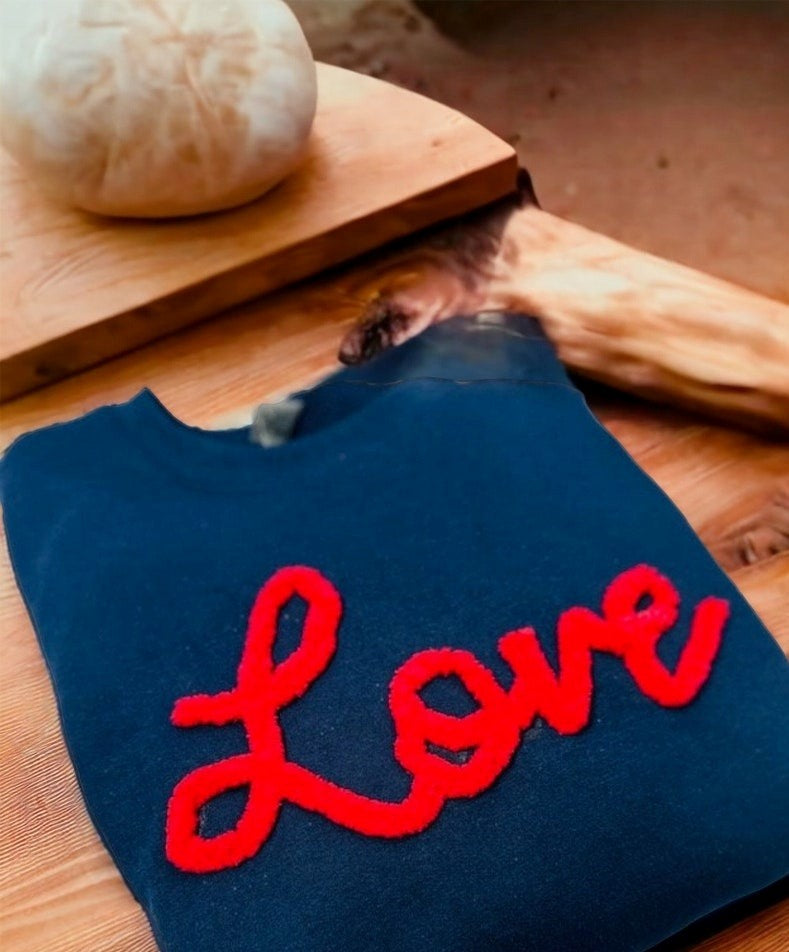 Love embroidery chenille yarn sweatshirt, custom made, valentines, gift for her, fuzzy letters, crewneck, school sweatshirt, team spirit