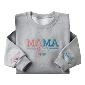 Mama of Both Embroidered Sweatshirt, Personalized Kids Name on Sleeve, Mom of Boy and Girl Gift, Mother's Day Sweater