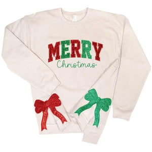 Bring festive sparkle and charm to your winter wardrobe with our Merry and Bright Embroidered Side Bow Sweatshirt. This adorable sweatshirt features a coquette-style side bow applique and elegant embroidered “Merry and Bright” lettering — the perfect blend of cozy, classy, and trendy for the holiday season.