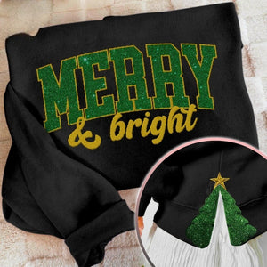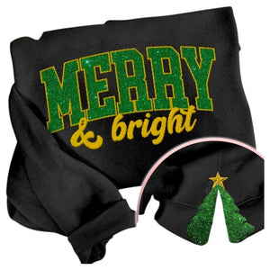 Beautiful “Merry and Bright” embroidery with glitter finish