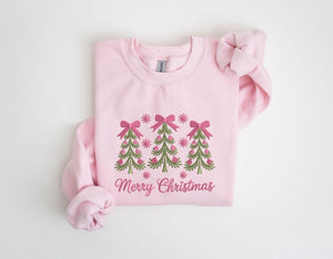 Merry Christmas Coquette Trees Embroidered Sweatshirt, Holiday Apparel, Holiday Sweatshirt, Christmas Embroidery, Christmas matching Gifts