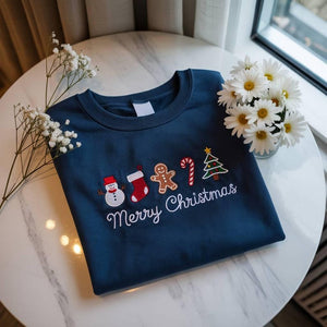 Merry Christmas Embroidered Sweatshirt, Embroidered Christmas Crewneck Sweatshirt, Embroidered Gingerbread Sweatshirt, Custom Xmas Gift