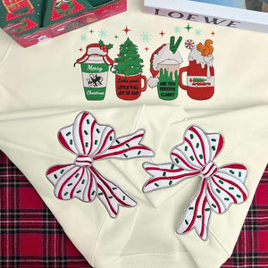 Crafted from soft, premium cotton-blend fleece, this Christmas crewneck keeps you warm and stylish for every holiday occasion — from family movie nights and Christmas brunches to gift shopping and snowy strolls. The bow detail on the side adds a sweet, feminine touch, making this sweatshirt an instant favorite for festive outfits.