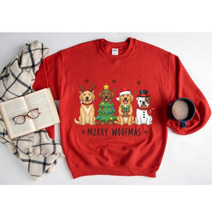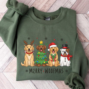 Merry Woofmas Embroidered Sweatshirt – Dog Christmas Sweater for Dog Mom, Pet Lover Holiday Gift, Cute Xmas Crewneck for Dog Owner