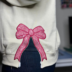 MIMI Side Bow Embroidered Sweatshirt, christmas side bow, Side Bow Applique, christmas crewneck bows, split hem christmas, Mama bow Shirt