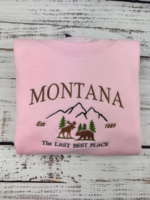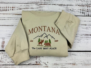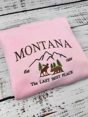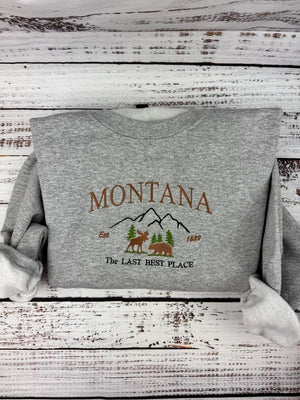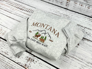 Montana Embroidered Shirt or Sweatshirt - The Last Best Place State with Moose and Bear
