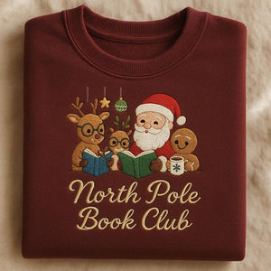 Join the coziest reading club of the season with our North Pole Book Club Embroidered Sweatshirt — a charming and festive design for book lovers and Christmas fans alike! 🎅✨