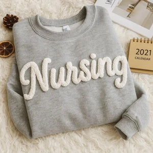 Celebrate compassion and care with our Nursing Chenille Yarn Embroidered Sweatshirt, designed especially for nurses who make a difference every day. Crafted from soft, cozy fleece and detailed with beautiful chenille yarn embroidery, this sweatshirt combines comfort and style for your daily wear.