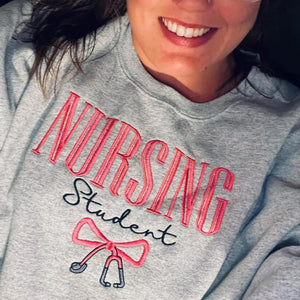 NURSING STUDENT Embroidered Hoodie, Bow Stethoscope, Nursing Sweatshirt, Embroidered Sweatshirt, Nursing School Gift Crewneck