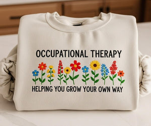 Show your pride for the OT profession — and celebrate every little victory in therapy — with this beautifully embroidered floral “Occupational Therapy” shirt. Designed for occupational therapists, OT assistants (COTA/OTA), OT students or supporters of the therapy community, this shirt blends meaningful design, comfort, and everyday wear.