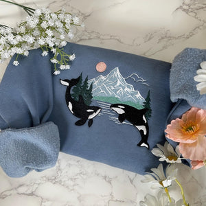 Orca Whale Embroidered Sweatshirt, Respect Local Wildlife, Protect National Park, Camping Granola Girl Sweatshirt, Pacific Northwest Sweater