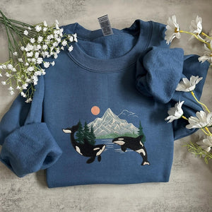 Celebrate your love for wildlife and the rugged beauty of the outdoors with this Orca Whale Embroidered Sweatshirt. Inspired by the majestic orcas of the Pacific Northwest and designed for adventure lovers, this cozy embroidered sweater carries a meaningful message of respect for local wildlife and protection of national parks. Whether you’re heading out for a camping trip, exploring scenic trails, or enjoying relaxed everyday style, this environmental sweatshirt blends comfort, purpose, and outdoor aesthetic.