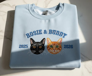 Personalized Cat Face Embroidered Sweatshirt with Pet Names
