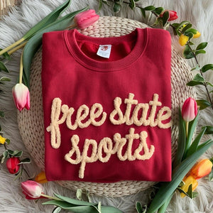 This cozy crewneck features fuzzy chenille letters embroidered with care, giving your team name or favorite word a bold, 3D textured look.