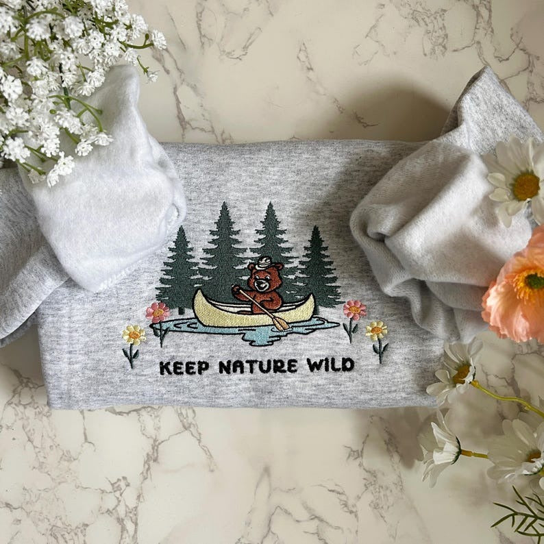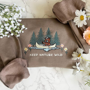 Respect Local Wildlife Keep Nature Wild Embroidered Sweatshirt, Protect National Parks, Camping Outdoor Granola Girl Sweatshirt, Environment