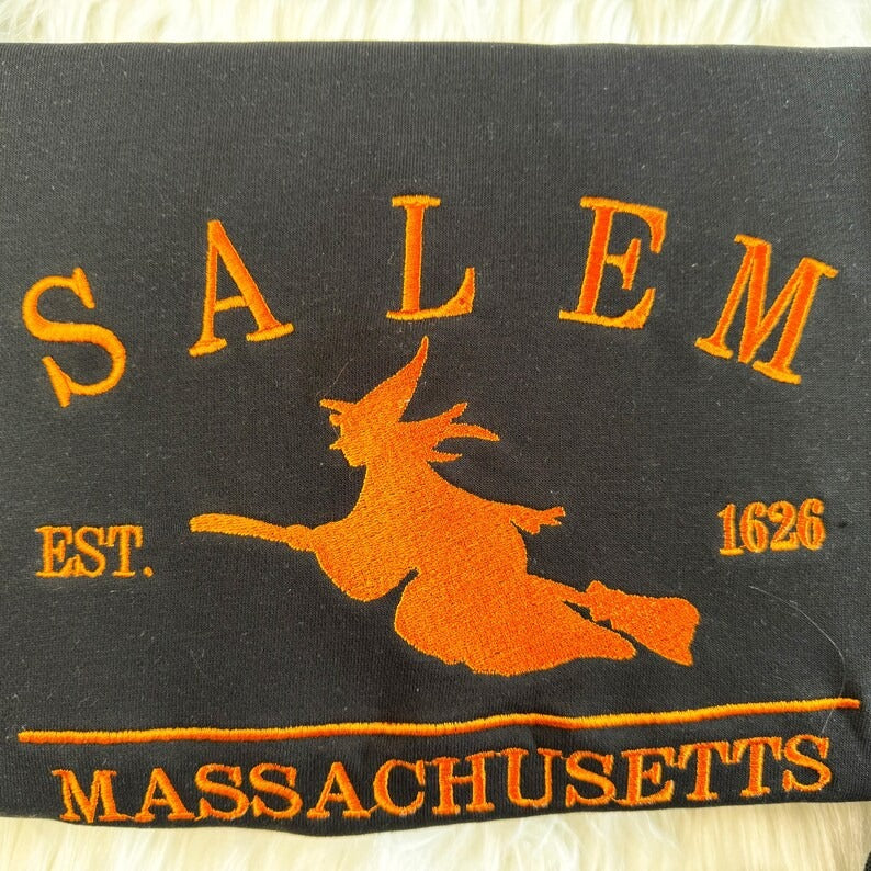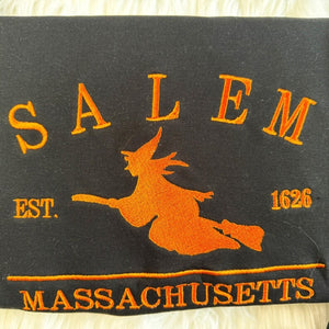 Salem Witch Embroidered Sweatshirt: Halloween Massachusetts Crew Neck
