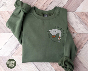 Bring the laughs and cozy vibes this season with our Silly Goose Embroidered Sweatshirt! Featuring a playful goose enjoying an espresso martini, this design is perfect for cocktail lovers with a sense of humor. The detailed embroidery gives it a premium, trendy look — ideal for brunch dates, fall parties, or lounging in style.