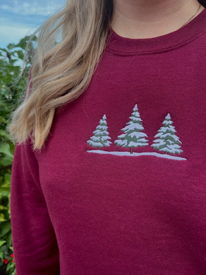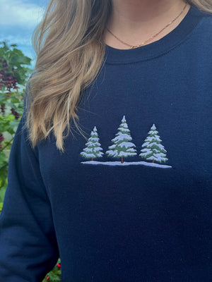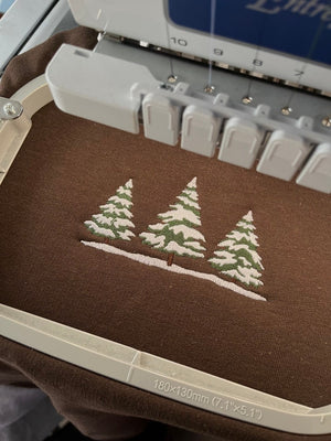 Bring winter’s calm beauty to your wardrobe with our Snow Trees Embroidered Sweatshirt — a cozy, minimalist design inspired by peaceful snowy forests. Featuring delicately embroidered pine trees dusted with snow, this crewneck captures the magic of the winter season in a subtle, timeless style.