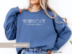 Teacher Gifts Shirt Embroidered Sweatshirt Cute Teacher Gift Doodle Teacher Crewneck Aesthetic Teacher Appreciation Back to School Jumper