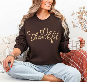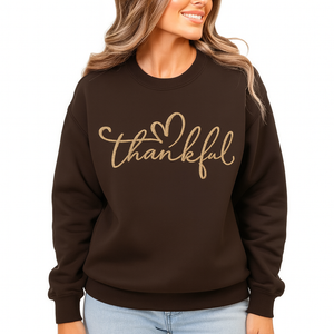 Elevate your seasonal wardrobe with this cozy, high-quality “Thankful” sweatshirt — the perfect blend of comfort, style and heartfelt meaning for autumn and holiday season.