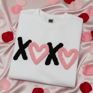 XOXO Yarn Embroidered Sweatshirt – Couples Valentine Gift | Chenille Heart Sweater & Custom Anniversary Present